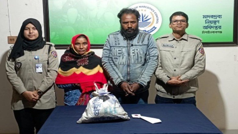 চাঁপাইনবাবগঞ্জে ডিএনসির অভিযানে মাদক ব্যবসায়ী স্বামী-স্ত্রী ১ কেজি গাঁজাসহ আটক...